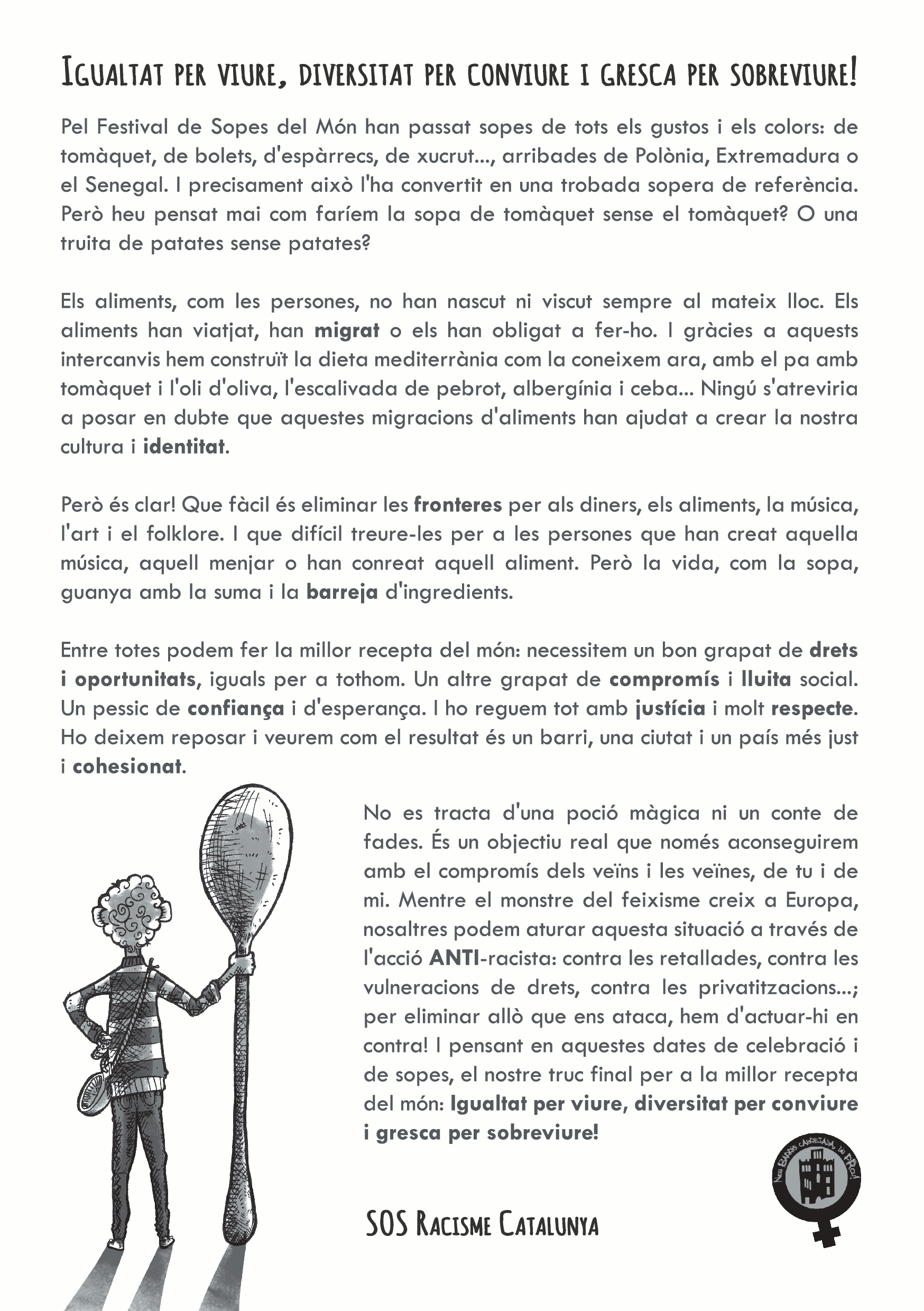Aquest any, les sopes contra el racisme: Jo sopo, tu sopes, ella sopa… nosaltres sopem #sopescontraracisme!!!