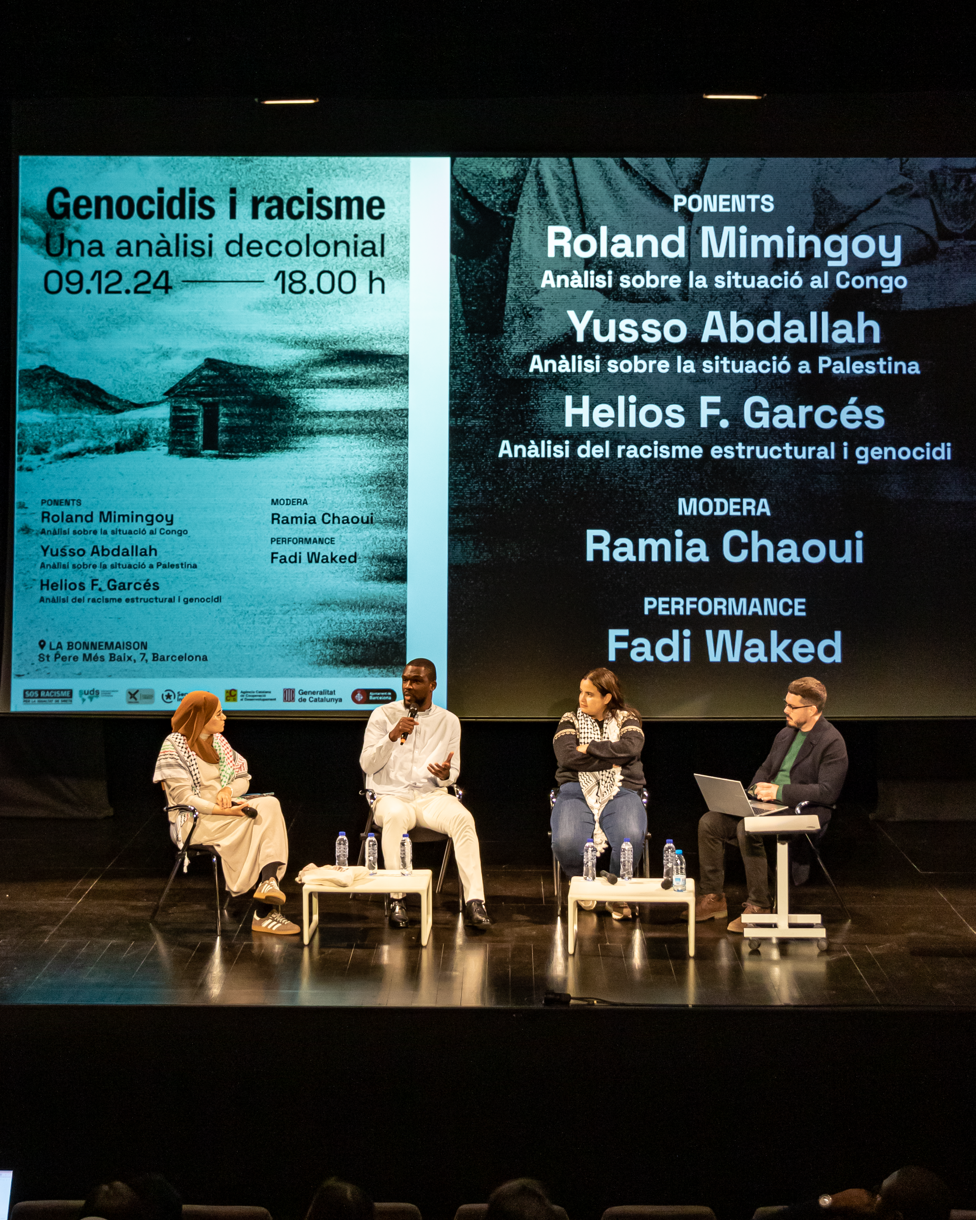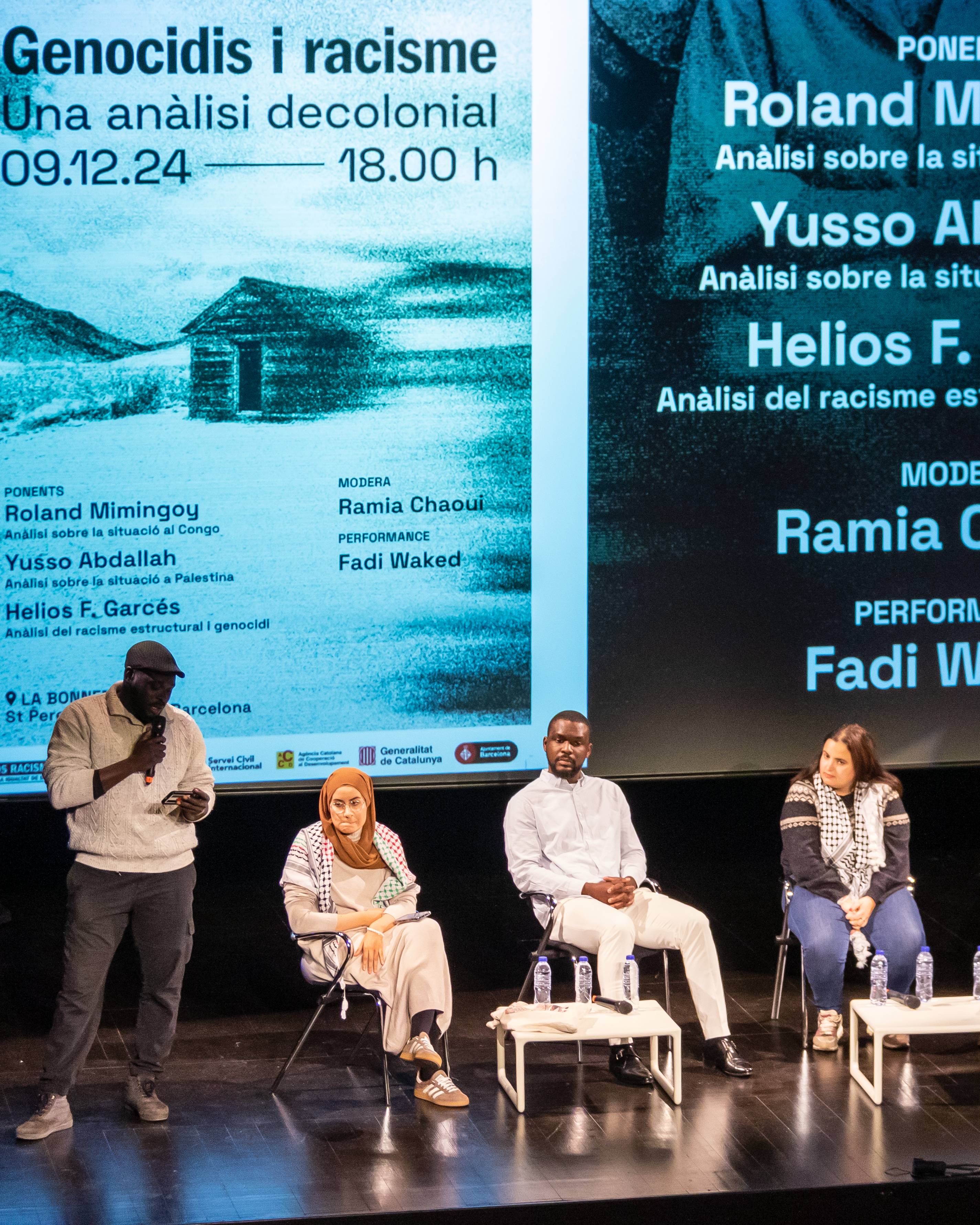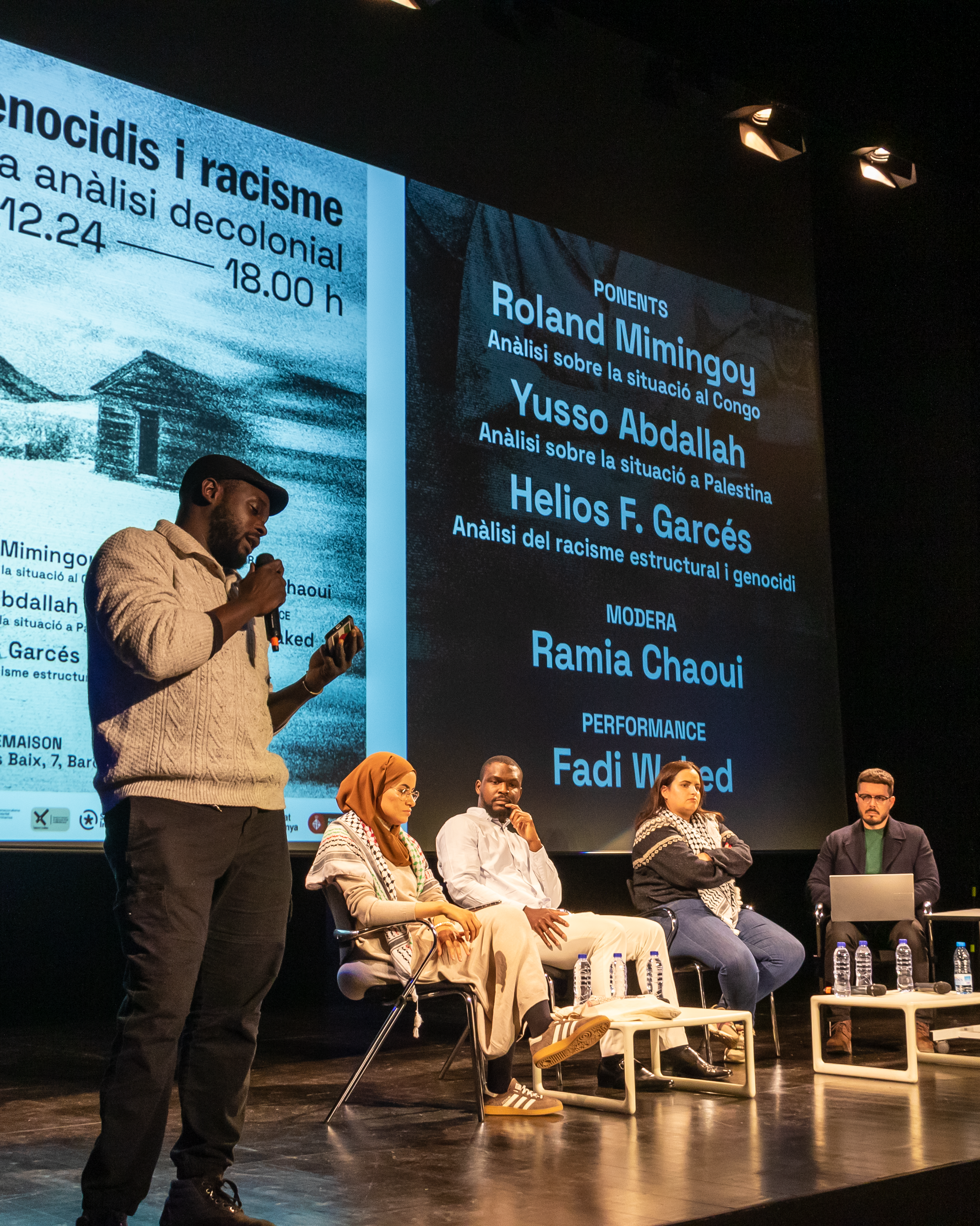 Amb la moderació de Ramia Rahoui, vam comptar amb les ponències de Roland Mimi Ngoy, que va analitzar la situació que viu la República Democràtica del Congo; Yusso Abdallah, que va parlar sobre la situació a Gaza, a Palestina i les seves implicacions i responsabilitats dels països del Nord Global; i finalment Helios F. Garcés va fer una reflexió global sobre la història colonial i la seva herència, així com sobre la relació indivisible dels conflictes del Sur Global amb el racisme estructural i l’imperialsme.