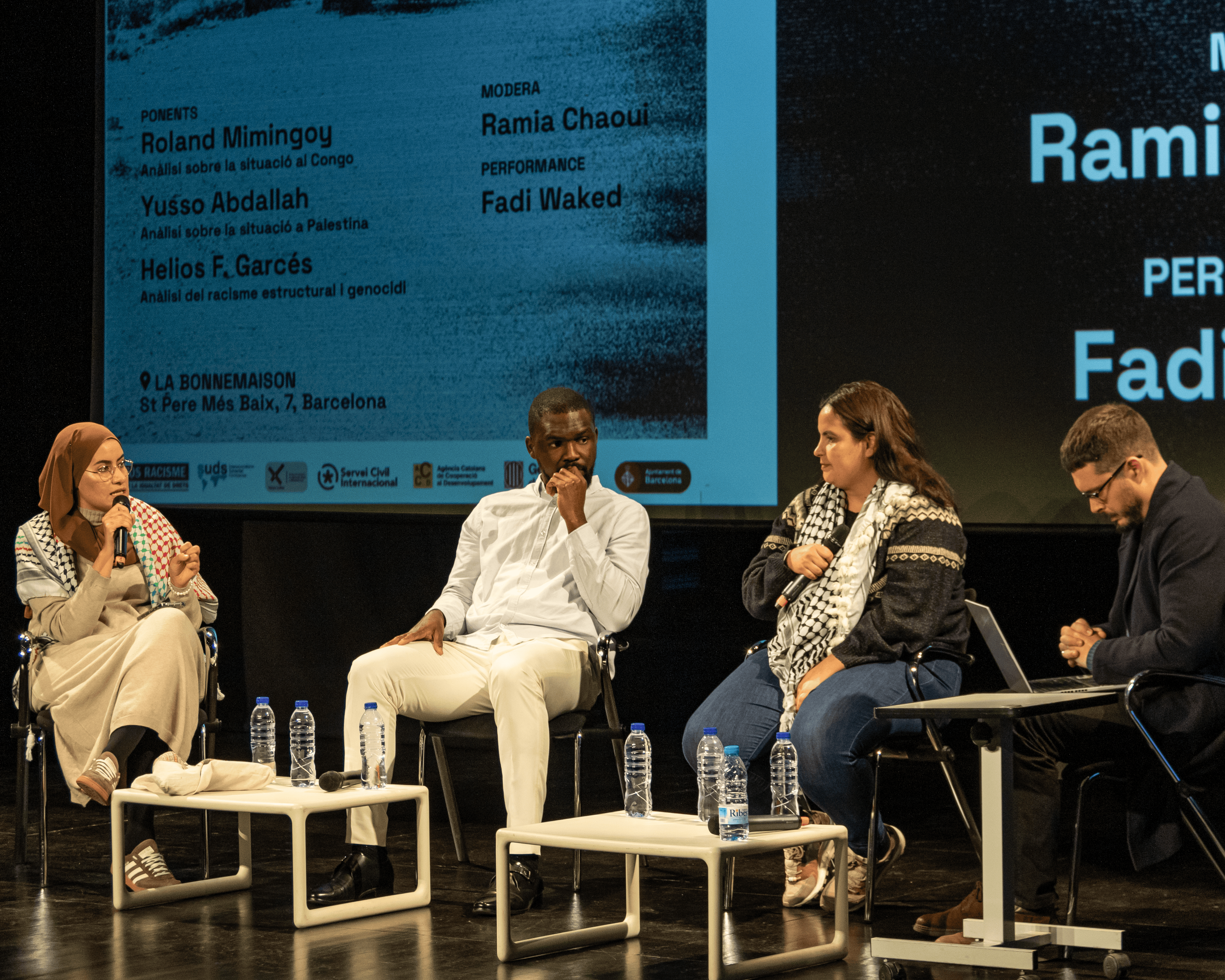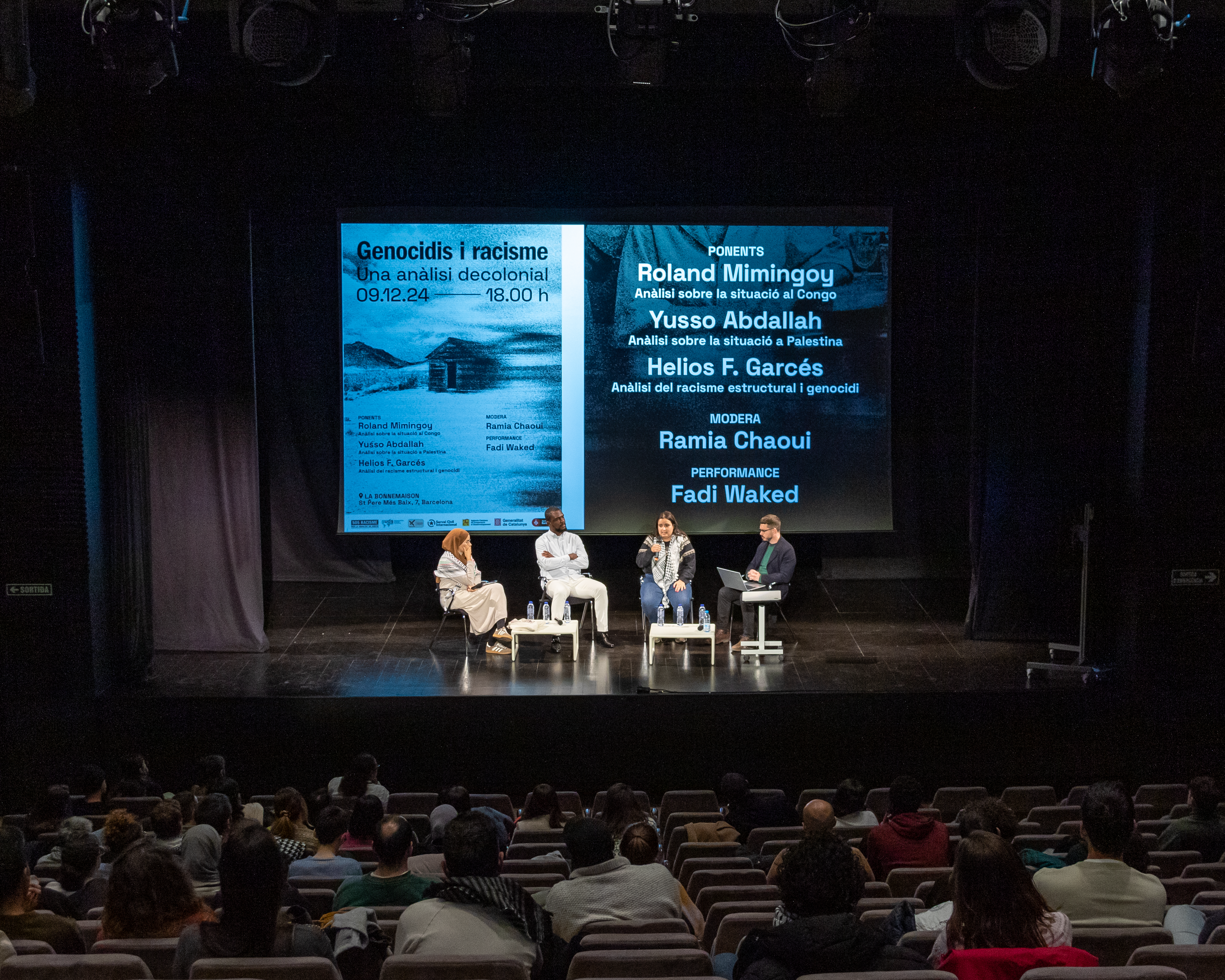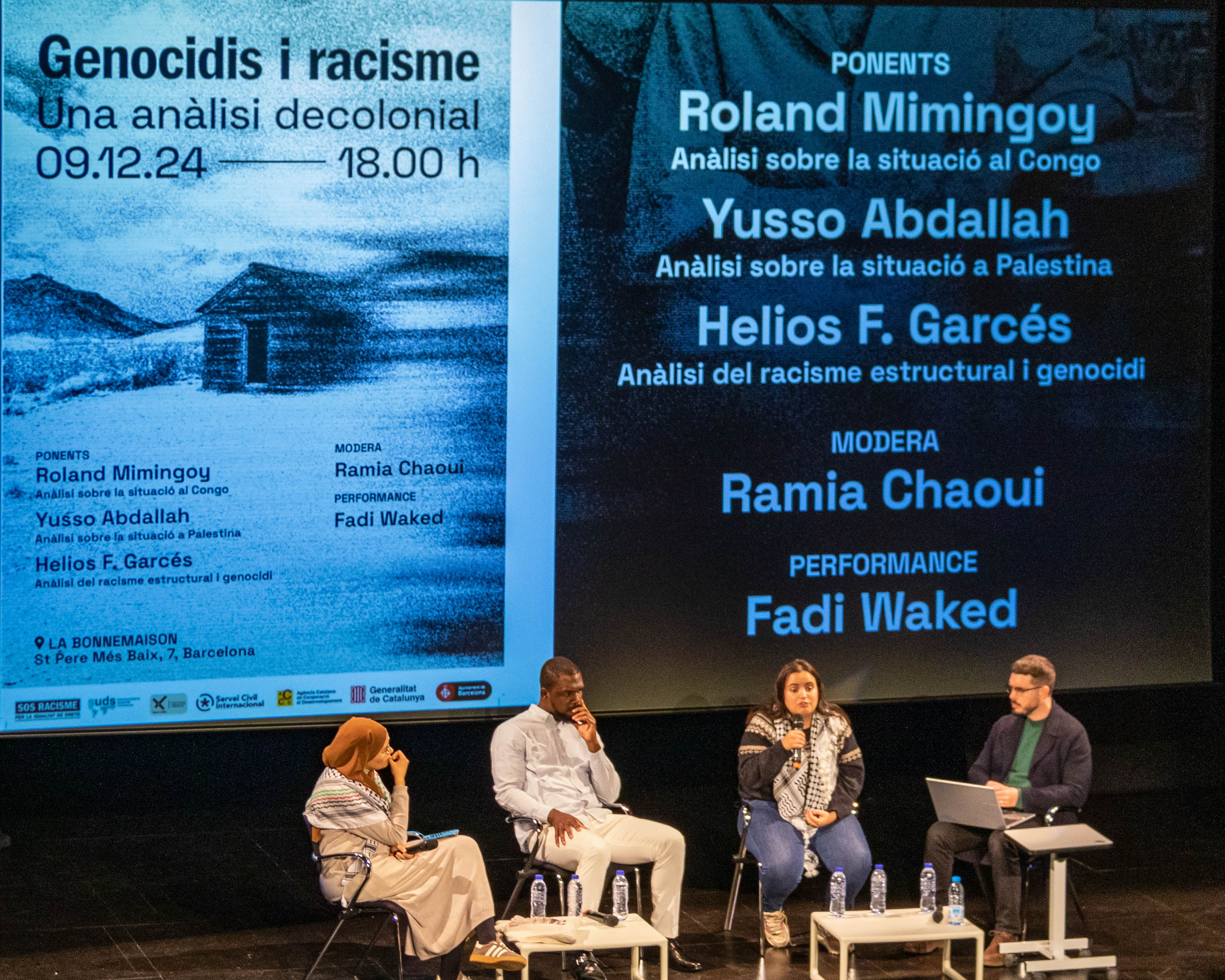 Amb la moderació de Ramia Rahoui, vam comptar amb les ponències de Roland Mimi Ngoy, que va analitzar la situació que viu la República Democràtica del Congo; Yusso Abdallah, que va parlar sobre la situació a Gaza, a Palestina i les seves implicacions i responsabilitats dels països del Nord Global; i finalment Helios F. Garcés va fer una reflexió global sobre la història colonial i la seva herència, així com sobre la relació indivisible dels conflictes del Sur Global amb el racisme estructural i l’imperialsme.