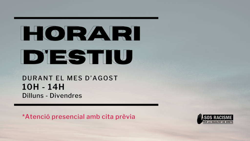Durant el mes d’agost SOS Racisme no atura la seva activitat, però modificarem el nostre horari:
