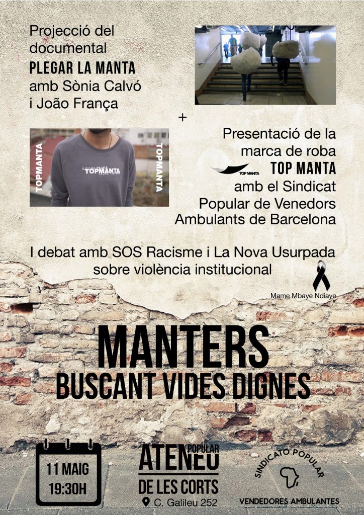 Divendres 11 de maig participem al cineforum de “Plegar la manta“, documental del 30 minuts de TV3 realitzat a partir del treball “Vida mantera” realitzat per Catalunya Plural i SOS Racisme amb la Beca DevReporter.