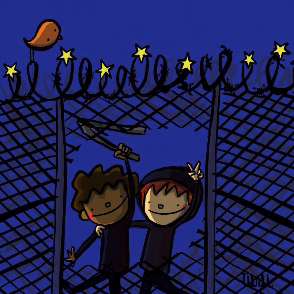 Obriu les fronteres i doneu la benvinguda a qui s’escapa de la guerra i de la violència econòmica en recerca d’un futur. Aquesta és la nostra resposta a la persecució, al terror, les bombes, la pobresa i la fam. No només ha de ser la solidaritat entre iguals la nostra arma contra les fronteres, sinó la crítica i pressió constant envers els qui les gestionen i un desmantellament de tot el sistema racista que s’encarrega de negar (de forma violenta i oculta) la lliure circulació, mentre hipòcritament enarbora la bandera de la solidaritat davant els ciutadans europeus.