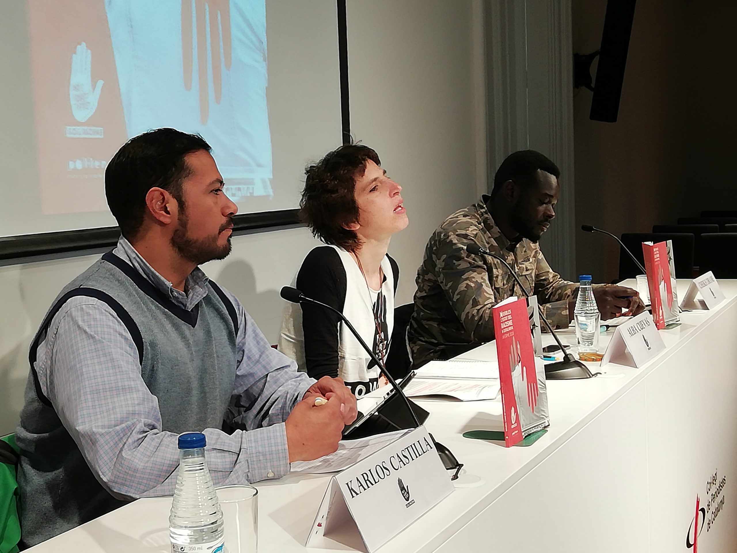 El passat 21 de març, Dia Internacional contra el Racisme, a les 10h a la sala d’actes del Col·legi de Periodistes, presentàvem el darrer informe “(in)Visibles: l’estat del racisme a Catalunya“. Alba Cuevas, directora de SOS Racisme, va exposar una anàlisi de les dades recollides el 2018 pel Servei d’Atenció i Denúncia (SAiD). Karlos Castilla, doctor en dret especialitzat en DDHH i membre del Consell de SOS Racisme, va parlar del poc compromís de l’administració a l’hora de protegir i defensar les víctimes de racisme. Per últim, Cheikh Drame, activista antiracista i membre del Consell, va exposar els beneficis de la sensibilització pel que fa a la denúncia de casos de discriminació en serveis privats.
