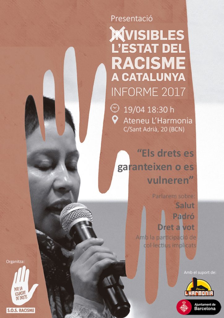 Per això el proper dijous 21 de juny estarem a l’Ateneu Harmonia del barri de Sant Andreu de Barcelona per analitzar les situacions de discriminació racista en l’accés a la salut, el padró i en relació als drets polítics. Tres eixos presents al darrer informe “InVisibles. L’estat del racisme a Catalunya” i que considerem que cal destacar pel seu impacte a la vida de les persones.