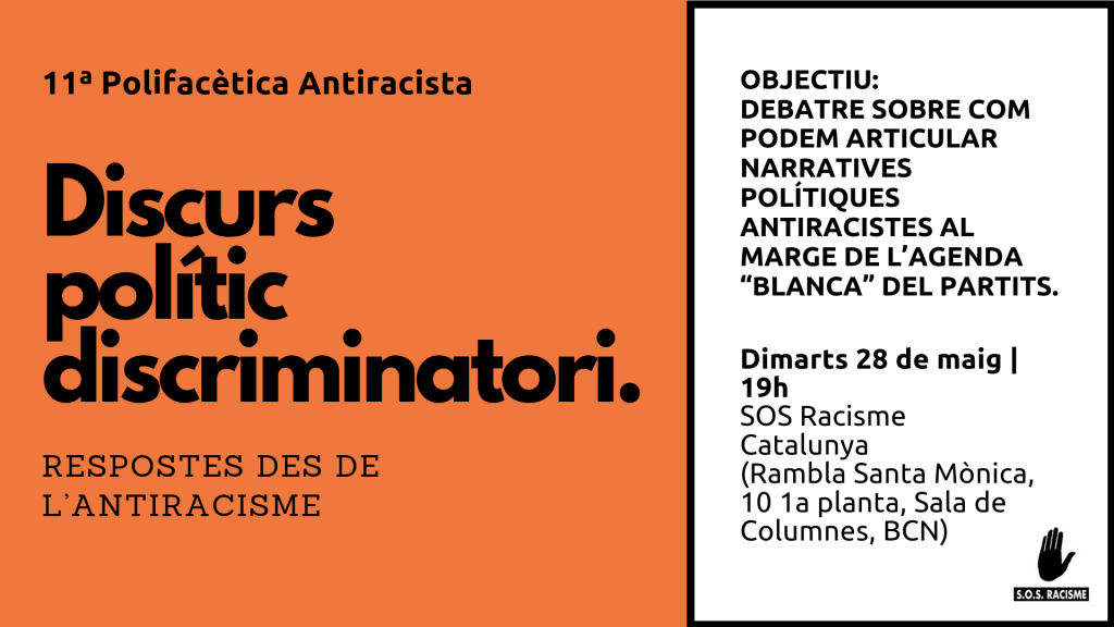 Després d’un període electoral llarg i dur pel que fa al racisme electoral i al discurs polític discriminatori, dedicarem el debat de l’onzena Polifacètica Antiracista a: