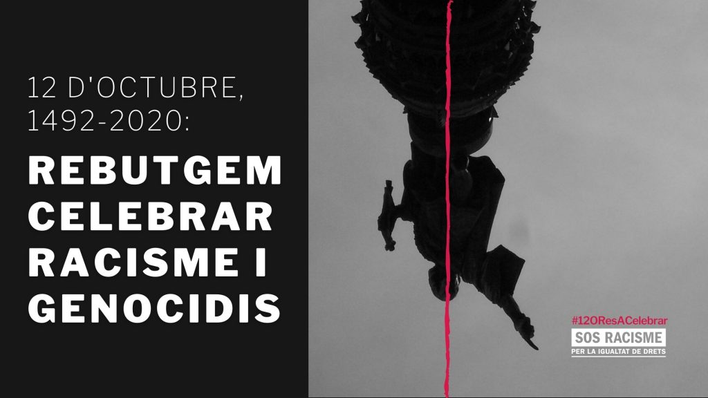 Des SOS Racisme Catalunya, com a entitat antiracista i de defensa dels drets humans, avui reflexionem i fem autocrítica com a part d’aquesta societat i prenem consciència que aquestes lògiques colonials segueixen encara molt presents. La nostra memòria col·lectiva no pot obviar que la riquesa de l’estat espanyol – i també de Catalunya- s’ha construït sobre aquest passat colonial i esclavista. Ens sumem a celebrar i a resignificar aquest dia com el Dia de la Resistència Indígena, tal com demanen les diverses col·lectives de persones migrants i racialitzades com a no blanques.