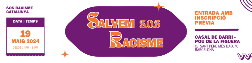 Per al 19 de maig hem organitzat una tardeta solidaria, amb la actuació del col.lectiu JOKKO, la gastronomia africana de ABARKA, espai infantil i més! Animem a tothom a participar, venir a disfrutar i ajudar-nos a que SOS Racisme Catalunya segueixi sent una eina per combatre el racisme al territori.Amb aquest esdeveniment et demanem la teva ajuda!