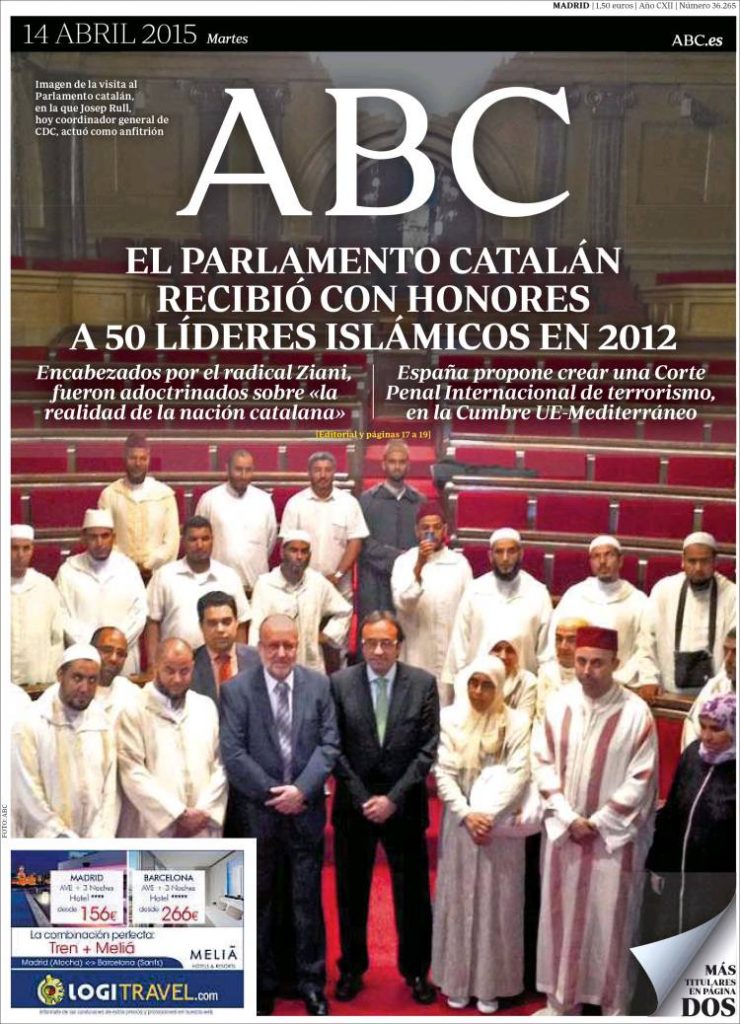 En primer lloc, considerem que la darrera informació publicada pel diari ABC a la seva portada, el dia 14 d’abril, afecta directament el Parlament de Catalunya, com a institució. Constitueix un atac a la vida democràtica de Catalunya, representada per la figura d’un Parlament escollit democràticament i denigra els representants d’una comunitat,  la musulmana, que forma part des de fa temps de la ciutadania catalana.