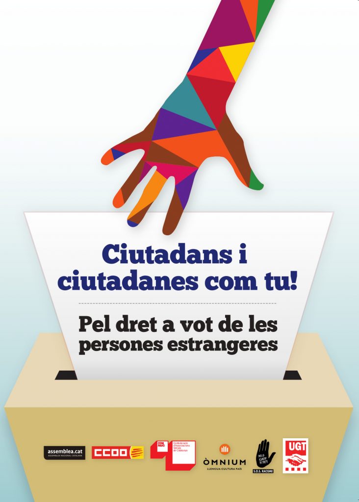 A la nostra societat, prop del 15% de la població catalana són persones estrangeres de diversos orígens. Ciutadanes i ciutadans que en la seva gran majoria no podran exercir o veuran limitat el seu dret de vot en les properes convocatòries electorals.