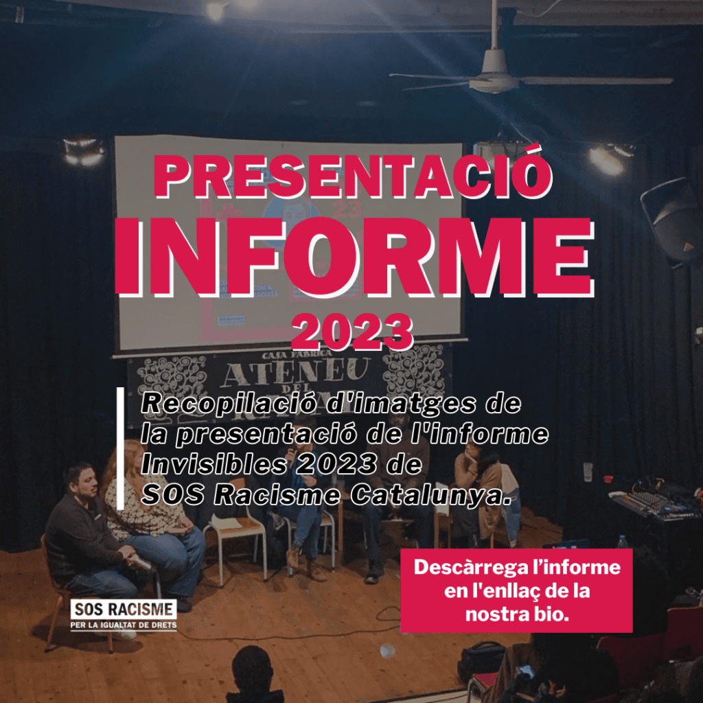 El passat 21 de març, vam fer la presentació del nostre informe inVisibles 2023, un recull de les dades, analitzades en profunditat, que rebem al SAiD a través de les denúncies que hem atès durant l’any 2023. Volem agrair a totes les persones i col·lectives antiracistes que van venir a escoltar-nos i a reflexionar amb nosaltres.