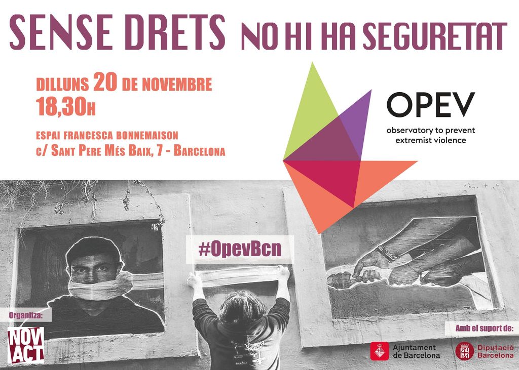 Com a entitat membre de l’OPEV, Observatori per a la Prevenció de l’Extremisme Violent (www.opev.org), dilluns dia 20 de novembre participarem a la presentació de l’informe “Sense drets no hi ha seguretat”, organitzada per l’associació NOVACT (www.novact.org).