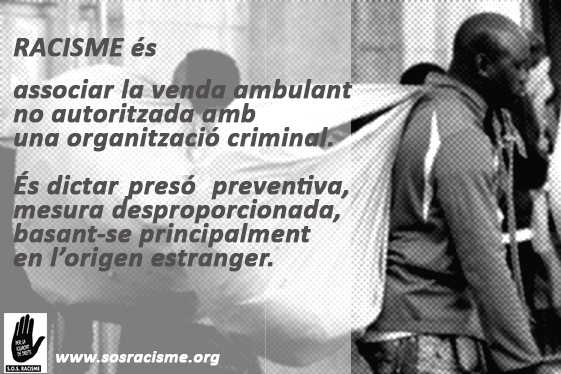 * És RACISME dictar presó preventiva a persones que es dediquen a la venda ambulant: una decisió desproporcionada, que es basa, principalment en el seu origen estranger i en una presumpta manca d’arrelament i risc de fuga. [Comunicat: Presó preventiva: criminalització, desproporcionalitat i racisme – Agost de 2016]
