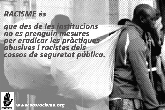 * És RACISME que des de les institucions públiques no es prenguin mesures per eradicar les pràctiques abusives i racistes dels cossos de seguretat pública. [Notícia: Deu anys de persecució del top manta: policies bons, policies dolents, setembre 2015. La Directa.]