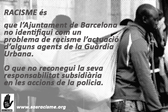 * És RACISME que l’Ajuntament de Barcelona, responsable de l’actuació dels cossos de seguretat públics municipals, no identifiqui com un problema de racisme l’actuació d’alguns agents de la Guàrdia Urbana amb els manters. [Informe: Diagnòstic de les vulneracions de drets dels venedors ambulant. Informe de SOS Racisme, Juny de 2016.]