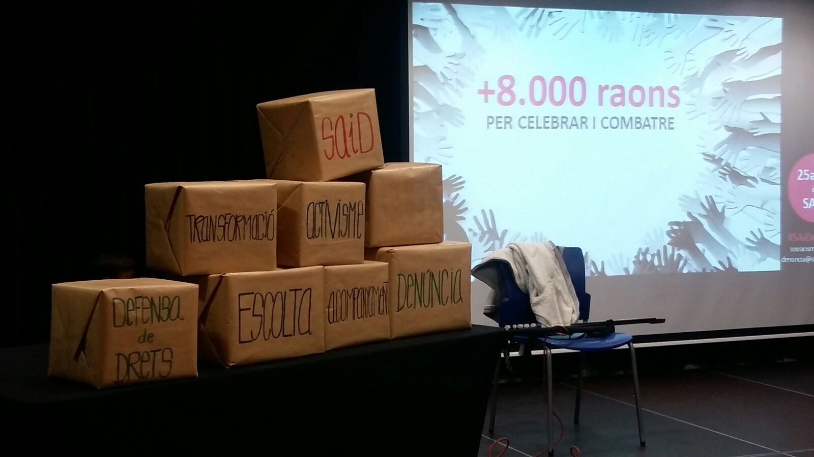 “Celebrem haver estat aquí per fer-ho. Però això també significa que durant aquests anys s’han donat milers de discriminacions racistes, agressions i violacions de drets. I això no ho celebrem, ho combatem”. D’aquesta premisa va nèixer el títol de l’acte: més de 8.000 raons per celebrar i combatre.