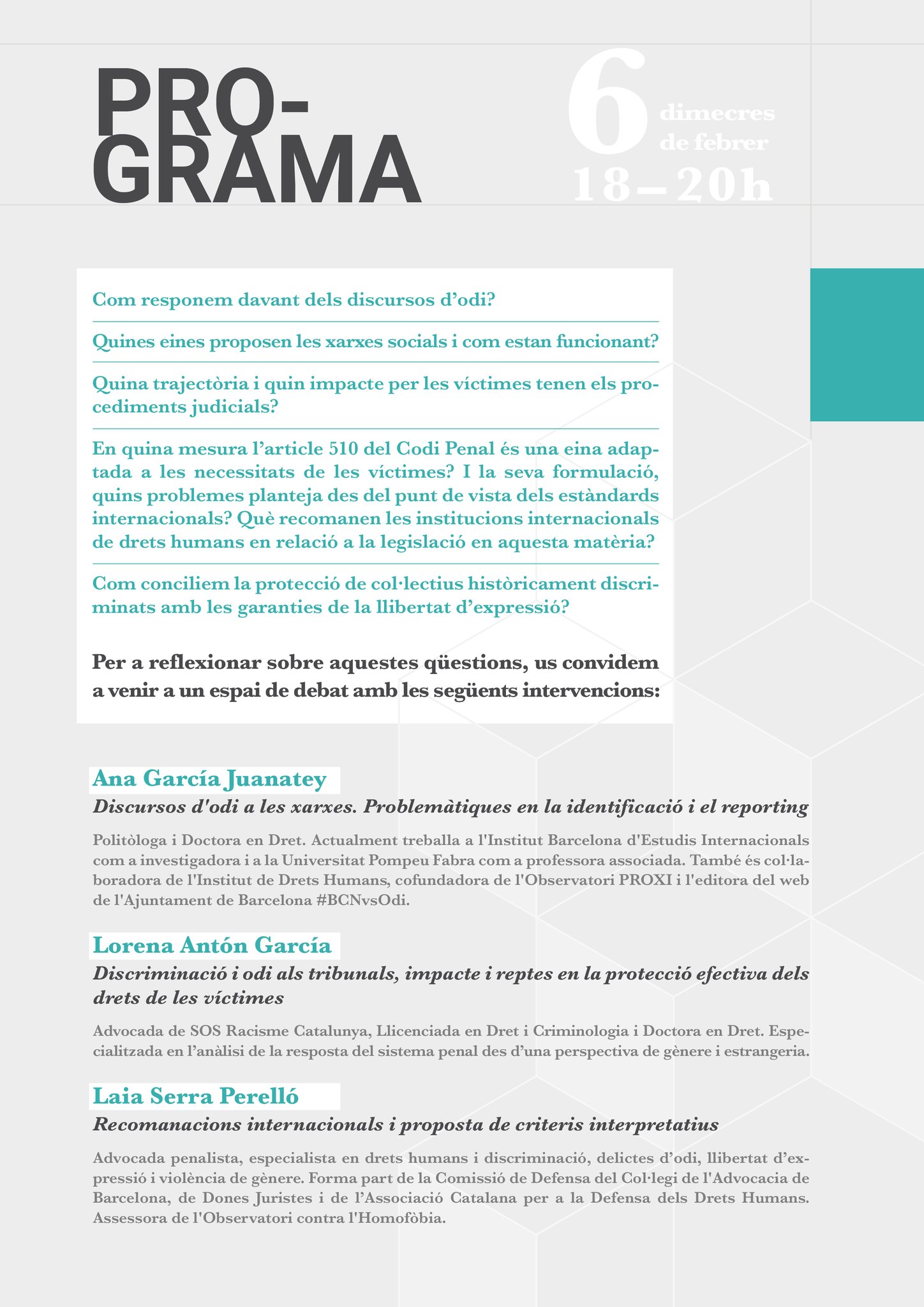 Lorena Antón, advocada de SOS Racisme Catalunya, participarà en la xerrada: COM ACTUEM DAVANT DEL DISCURS D’ODI ? Reflexions sobre eines existents, recomanacions internacionals i vies per a la conciliació de drets.