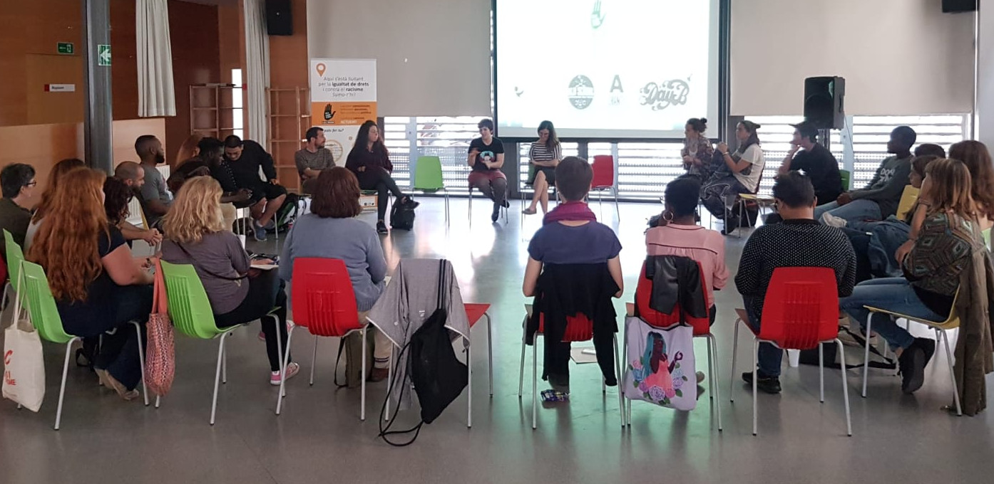 L’assemblea oberta del mes de maig, organitzada pel grup de treball d’Aixòésracisme, es va centrar en el dret d’admissió racista en motiu de la campanya #elracismesurtdefesta. L’objectiu era compartir experiències, de persones discriminades, de testimonis de discriminacions així com de persones que treballen a locals d’oci nocturn i podien traslladar la seva vivència. I entre totes, construir estratègies per plantar cara a l’aplicació racista del dret d’admissió.