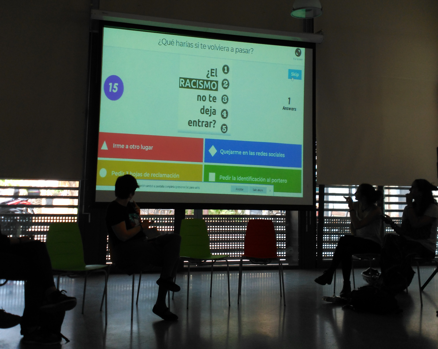 L’anàlisi de les respostes va donar peu a reflexionar i debatre sobre els diferents consells de com actuar davant un cas d’aplicació racista del dret d’admissió: